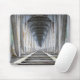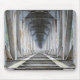 Los haces de acero y las vigas de metales pesados combinan con la ingeniería estructural extrema en esta fundación del puente. La foto de color captura las superficies del acero frío y duro en sombras del gris, y la perspectiva interesante da la ilusión de entrar en un túnel o un canal inclinado.