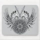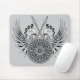 Dos cráneos de guerreros alados con mohawks, lanzas y escudo decorativo.