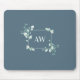 This elegant personalized mousepad features delicate watercolor eucalyptus greenery and botanical floral frame on a blue grey background. Personalize it with initials to make it uniquely yours or a thoughtful botanical office gift.