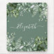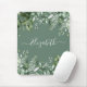 Acuarela La almohadilla del ratón de Verdor Botánico incluye hiedra, helecho y hojas de salvia. Su nombre en un guión elegante. Sage Green Background.