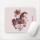 Mousepad with a cute retro style carousel horse. Drawn in Pretty pink colors with fancy flowers.