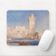 Rodas. Joseph Mallord William Turner (1775 - 1851). Un bonito paisaje marino en tonos rosa y azul. En primer plano hay barcos y barcos en la bahía, cerca de las murallas de la ciudad. en el centro, hay una torre alta. Al fondo, una ciudad con casas de piedra. Reproducción de obras famosas de imágenes artísticas de dominio público.