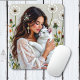 Alfombrilla De Ratón Woman and White Cat and Dandelions