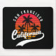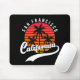 Alfombrilla de ratón de San Francisco con un diseño retro que presenta una puesta de sol y palmeras sobre fondo negro (color de fondo personalizable). Este diseño también tiene California en una fuente manuscrita con un glifo de cola con floritura para ese look retro elegante. Esta Alfombrilla para ratón es solo para ti si eres de San Francisco o puedes conseguirla como regalo o recuerdo para alguien.