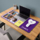 Estera de escritorio para un ordenador portátil. Una idea de regalo para cualquiera. Reemplace las 6 fotos con sus propias imágenes favoritas. Añadir iniciales y nombre. Morado, amarillo y blanco con frases positivas cortas.