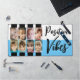 Estera de escritorio para un ordenador portátil. Una idea de regalo para cualquiera. Reemplace las 8 fotos con sus propias imágenes favoritas. Vibes positivas. Azul, blanco y negro con corazón de amor y rayas.