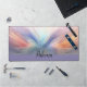 Descanse de la inspiración con la alfombra de escritorio "Dawn's Embrace", un lienzo vibrante donde la primera luz del amanecer combina con la elegancia de las plumas. Este diseño capta el corazón de un minimalista al que le gusta un toque de color, cada golpe es una sinfonía de tonos pastel que hablan de cielos matutinos y nuevos comienzos. Un bello regalo o un toque personal de esplendor para su espacio de trabajo, esta alfombra encarna la danza espiritual de las maravillas aviares, proporcionando un telón de fondo de calor y creatividad a cada esfuerzo.