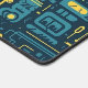 This design channels the essence of digital age with its abstract representation of circuitry and technological elements. The intertwining lines and geometric shapes create a complex network that resembles a futuristic circuit board. Using a cool-toned color scheme with pops of yellow, it brings a sleek, modern look that's perfect for tech enthusiasts. This pattern encapsulates the digital heartbeat of our world, making it an ideal choice for products that appeal to those fascinated by the intersection of technology and art.