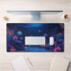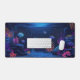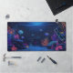 Esta alfombra de escritorio le dará profundidad a su escritorio. Cuenta con un relajante ilustracion acuario oscuro con peces y corales de color neón. Esta alfombra de escritorio es una excelente elección para los amantes de la vida marina y del acuario.