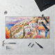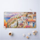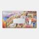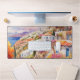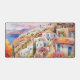Paisaje colorido de un pueblo griego para la alfombra de escritorio, hecha al estilo acuarela.