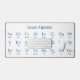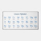 Letras griegas fundas inferiores y superiores con sus nombres. Objeto vectorial con colores personalizados para títulos, letras y nombres de letras. Color de fondo personalizado.