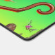 Esta alfombra de escritorio tiene una bruja retratada en ella.