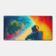 Esta alfombra de escritorio tiene un astronauta.