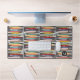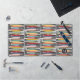 Esta alfombra de escritorio de backgammon tiene un diseño de edad atómica retro con muchos colores vintage, símbolos atómicos y de explosión usados en las piezas de juego. Un patrón súper divertido para cualquiera que ame los diseños modernos retro de mediados de siglo y el juego del backgammon. El patrón de esta alfombra de escritorio se puede hacer pequeño o mayor.