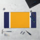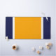 Este diseño deportivo presenta una amplia franja vertical dorada central realzada con rayas blancas contra un fondo azul marino oscuro.