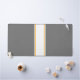 Este moderno diseño deportivo presenta una franja central vertical blanca realzada con piñones flotantes de color amarillo dorado en un fondo gris vibrante.