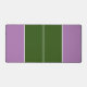 Este moderno diseño cuenta con una franja media y dos bordes contra el vibrante centro verde forestal y los fondos de lavanda de borde violeta.