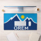Mat de escritorio con un diseño con la bandera de Orem, Utah. Una bandera azul, blanca y amarilla con picos de montaña y el sol en el centro