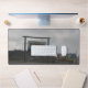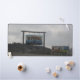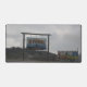 Una alfombra de escritorio con una foto del cartel de Bienvenida a Wyoming.