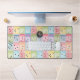 Esta alfombra de escritorio de bingo retro tiene 12 tarjetas de jugador de bingo, todas de diseño y color retro. También están marcados con marcas negras con tres símbolos atómicos. Un diseño muy divertido y colorido, perfecto para todo amante del bingo. Personalice esta alfombra de escritorio con un apellido e inicial. También puede hacer que el patrón bingo sea más pequeño o más grande en la alfombra. Una gran manera de traer un toque de color a tu oficina.
