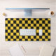 A black and yellow checkerboard pattern with alternating squares creates a bold, geometric design. The pattern appears balanced and vibrant.