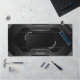 Black and gray futuristic metallic texture, a fun modern geometric gaming background. Personalizable, optional blue monogram.