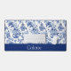 This blue chinoiserie monogram name desk mat features elegant floral vases in classic blue and white with a bold centered name in a trending font. Perfect for home styling, this chinoiserie monogram design adds timeless charm and personalized sophistication.
