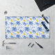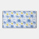 Blue Toile Palm Trees Lemons Pattern Desk Mat. Bring a splash of tropical coastal charm to your home decor with this design featuring a light blue striped background adorned with sketched blue palm trees and vibrant yellow lemons. Add sophisticated elegance to your living space or office space with this unique, original design.