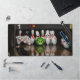 Una alfombrilla de escritorio con una foto de bolos convertidos en caricaturas.