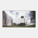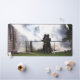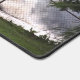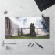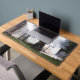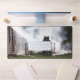 Una alfombra de escritorio con una foto de bomberos luchando contra el fuego.