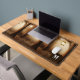 Moqueta de escritorio con un fantástico ilustracion de colores marrones y amarillos. Un mágico bosque místico con un gran árbol sosteniendo una linterna de antaño. Luces de hadas bailando por todas partes. Un diseño maravilloso.