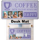 Estera de escritorio para un ordenador portátil. Esta mat morada clara y oscura es la forma perfecta de iluminar tu espacio de trabajo y recordarte las cosas simples de la vida que te hacen feliz. La alfombra presenta un diseño divertido y alegre con las palabras "el café con amigos me hace feliz". Reemplaza las 4 fotos con las suyas. Así que, ya sea que trabajes desde casa o en la oficina, esta alfombra de escritorio es la manera perfecta de darle un toque de personalidad a tu espacio y hacer tu jornada laboral un poco más feliz.