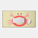 Esta impresionante alfombra de escritorio presenta un contorno de cangrejo rojo con piernas y garras rosas. El cangrejo tiene grandes ojos negros en los tallos. También hay un texto rosado que dice Cáncer dentro del contorno del cangrejo. Este diseño es ideal para personas con cumpleaños entre el 21 de junio y el 22 de julio.