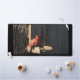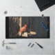 Una alfombra de escritorio con una foto de un cardenal.