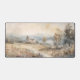 Este diseño de alfombras de escritorio presenta un cuadro colonial de una casa de campo situada en un bosque entre colinas. Este diseño ofrece un ambiente relajante con colores suaves y mullidos.