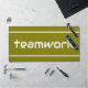 This sporty design features white modern TEAMWORK text and sleek edge stripes against golden olive background. The text and colors in this design can be personalized.