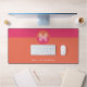 Chic Retro Pink Orange Geometric Modern Monogram Desk Mat