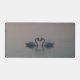 Impresionante fotografía de dos cisnes nadando cabeza a cabeza creando la ilusión de un corazón en el agua. Están juntos en un lago polvoriento temprano por la mañana,
