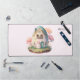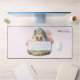 Moqueta de escritorio con una imagen adorable y un conejo redondo en el exterior de su casa en forma de huevo. Los colores pastel y los cerezos le dan un ambiente kawaii japonés.