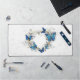 Corazón dorado, con flores morfo realistas azules y blancas. Morfo. Diseño con morfo de mariposas azules.