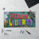La alfombra de escritorio debería transmitir un sentido de alegría, libertad y patriotismo. El diseño floral crea un ambiente alegre y animado, mientras que la forma del corazón y los colores patrióticos refuerzan el tema de la libertad.