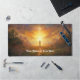 The sun rises as a solitary, silhouetted figure stands in the center of a forest clearing to greet the golden light of the heavens. Fluffy clouds part as the great star casts its fiery rays onto the world, illuminating everything in its glorious warmth. Let this magical scene grace the surface of your desk or table to bring you the promise of another day and the beauty of the sun. Designed to protect your surfaces and provide a smooth mousing experience, this jubilant design is sure to bring a celestial glow to your computing experience.