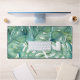 Esta tibia alfombra de escritorio fue diseñada usando mi original color de agua, la vegetación de la hoja de palma de monstera. Perfecto para su oficina de casa con temática tropical.
