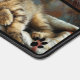 Desk mat featuring 7 images of cats, signed with a paw print. Add your own photos if you like.