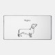 Este elegante tapete de escritorio presenta un elegante dibujo de una línea blanca y negra de un Dachshund. Es perfecto para añadir un toque personal. El texto personalizable le permite hacerlo único suyo. Ideal para los amantes del perro y para los profesionales de diseño.