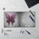 Añada un toque elegante a su espacio de trabajo con una estera de damasquetes de mariposa con joyas. El diseño de la alfombra de escritorio incluye una mariposa vibrante contra un patrón de damasco vintage y la personalización del nombre. Hay regalos adicionales disponibles con este diseño.