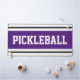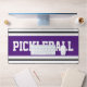 Este divertido diseño deportivo presenta texto atlético de PICKLEBALL dentro de audaces bandas de carreras en color morado, negro y blanco.