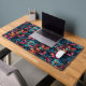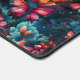 Esta alfombra de escritorio tiene un diseño de mariposa.