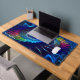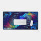 Imagen fractal de tonalidad principalmente azul con resaltado rojo, verde y amarillo que sugiere piel de dragón. Personalizar agregando su propio texto.