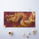 La estera representa la imagen de un dragón dorado sobre un fondo rojo. ¡Esto sería una alfombra increíble para cualquiera que ame a los dragones!